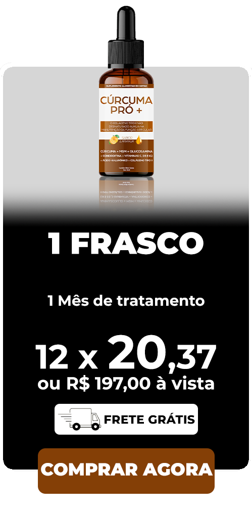 Chegou o fim dos tratamentos invasivos, dolorosos e com resultado temporário! O Cúrcuma Pró + funciona por meio de aplicação sublingual, que proporciona uma absorção rápida e eficaz por meio da glândula que temos sob a língua, nela, vasos que acessam diretamente a corrente sanguínea, absorvem rapidamente seu conteúdo e promovem resultados surpreendentes em pouquíssimo tempo. Você ira pingar 12 gotas a noite.